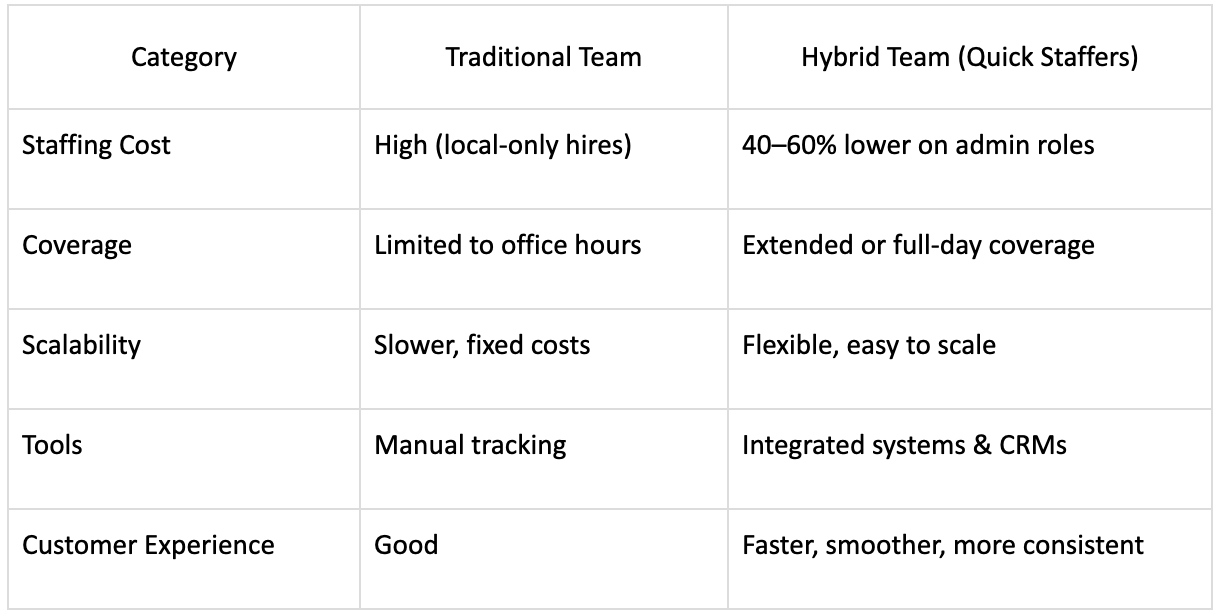 Quick Staffers helps you build that system from the ground up — trained, ready, and fully aligned with your brand. Visit QuickStaffers.com today to get started and see how a hybrid team can transform your business.